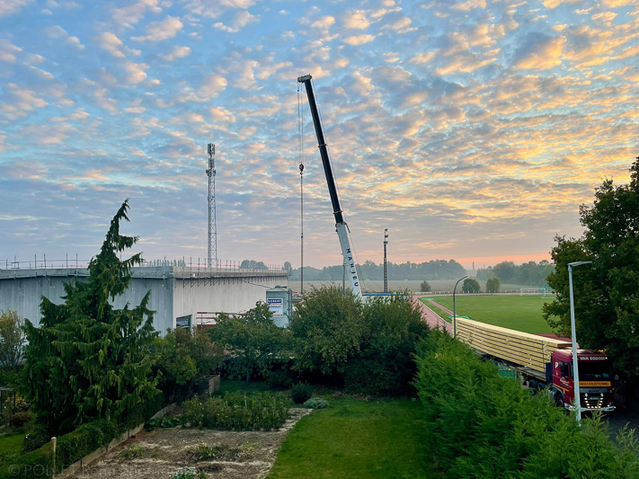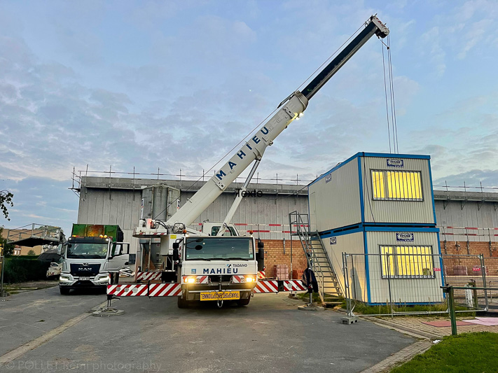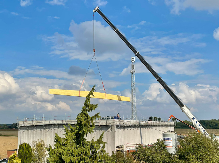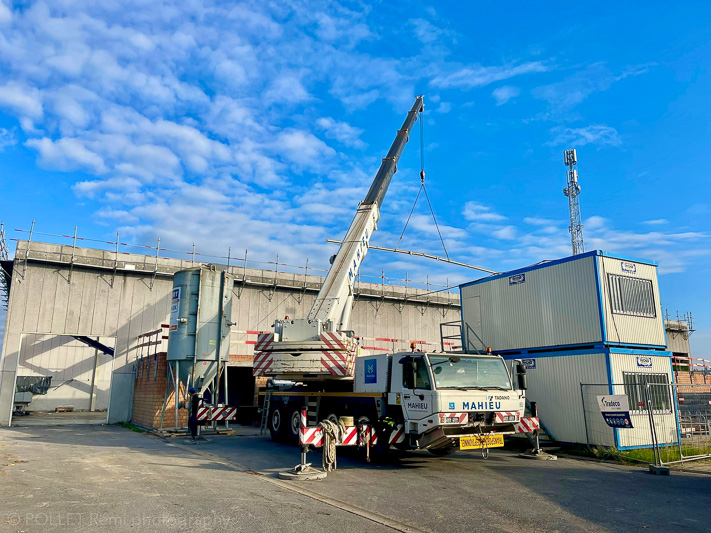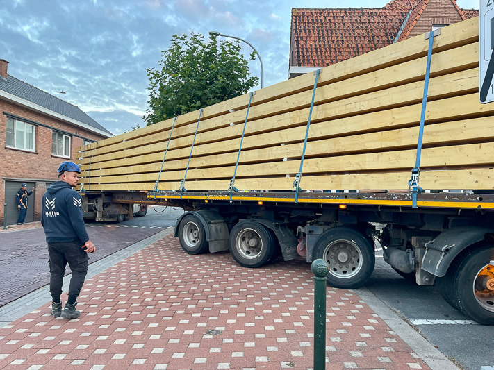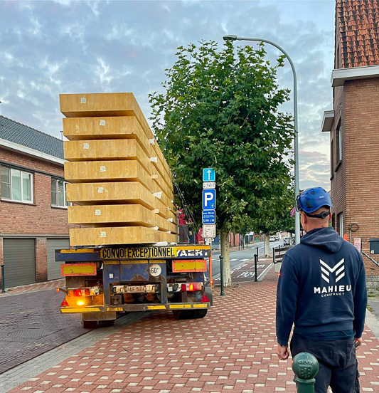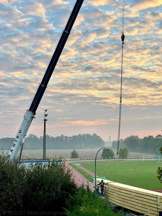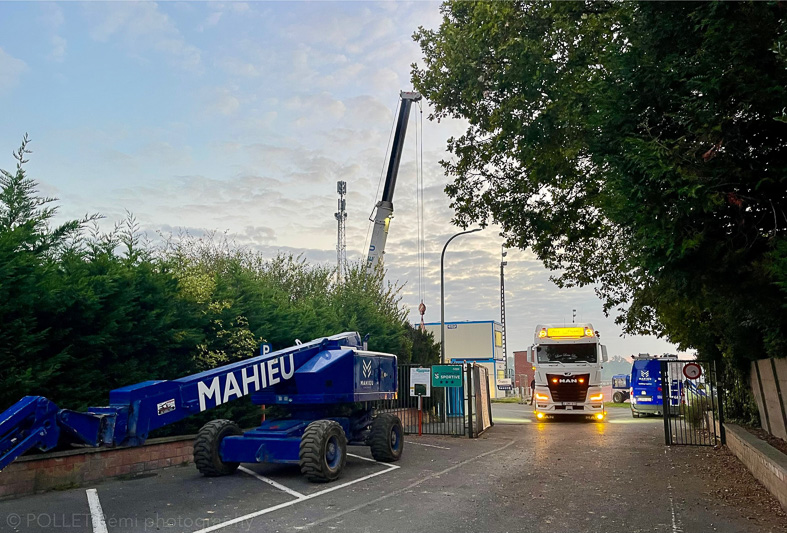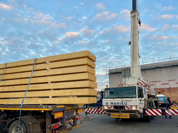 En ce jour du 29 septembre, la rénovation de la salle des sports du Bizet a franchi une étape importante avec la livraison des poutres en lamellé-collé pour la réalisation de la charpente. Le convoi exceptionnel transportant ces éléments de structure, mesurant plus de 20 mètres de long, est arrivé sur le site aux alentours de 7h00. L’entreprise Mahieu, bien connue dans la région pour son expertise dans le domaine, était aux commandes de l’opération. Grâce à une organisation précise, les premières poutres ont pu être posées dans le courant de la journée, marquant ainsi le début de la mise en place de la structure. Le travail se poursuivra durant la semaine.