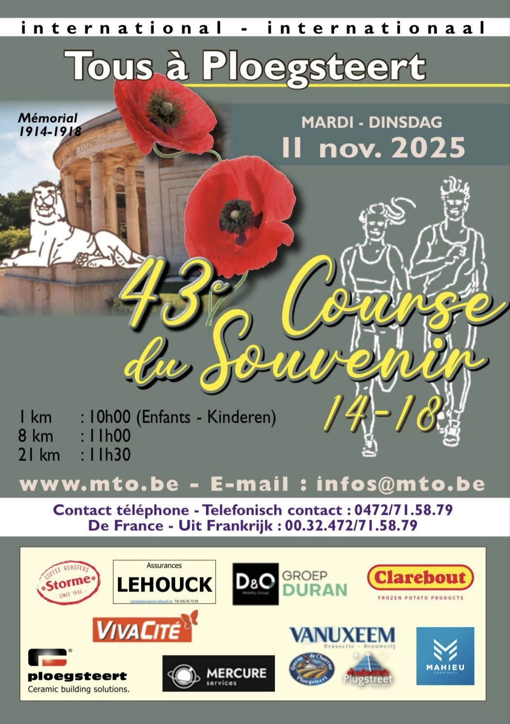 C’est le mardi 11 novembre 2025 que se déroulera la 43 eme course du souvenir à Ploegsteert.