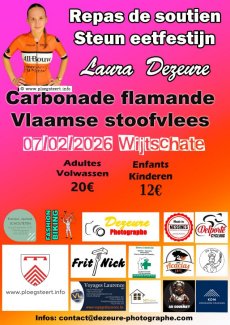 Pour lancer sa 3ème saison dans les pelotons la jeune cycliste Messinoise Laura Dezeure, organise avec ses parents son premier repas de soutien. A cette occasion, une délicieuse carbonade vous sera préparée par le traiteur Au Gourmet de Comines.